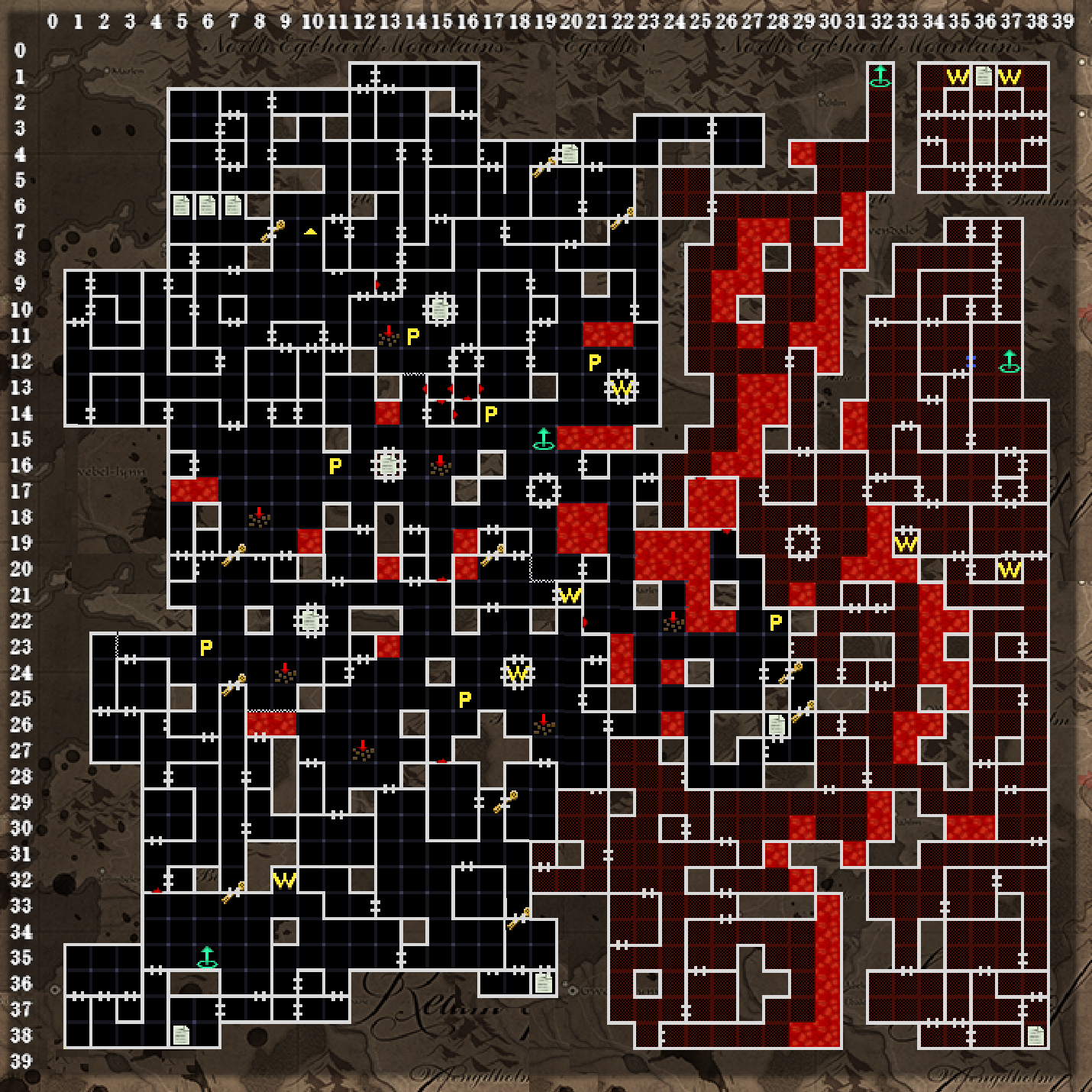 中央と中央左の独立したエリアは、戦闘中の空間転位で入れることがあります。失敗すると石の中に入るので注意。怖ければ、タイトルのコンフィグで、各種自動セーブをオフにしておけば、石の中に入ってもリセットが効きます。
