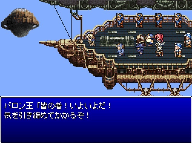 当時FCからSFCへ鞍替えしたFFは、大幅にグラフィック性能が向上。立体感あふれるオープニングのシーンが衝撃的だった。