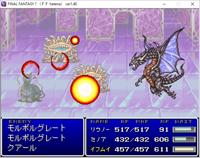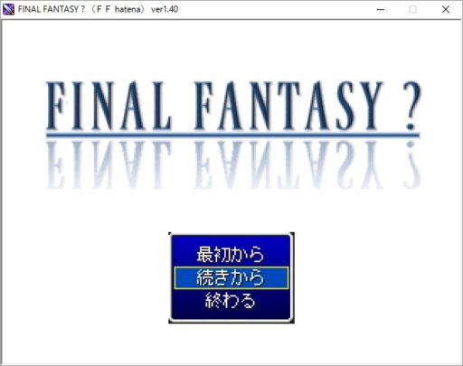 タイトルは「FINAL FANTASY ?(FFはてな)」。制作ツールは、RPGツクール2000。システムはFFを踏襲しているが、ストーリーは完全オリジナル。随所に他ゲームネタもある。標準プレイ時間は20時間程度。著作者は、norikarn氏。作品の登録場所はCLONEGAMEPARTY。