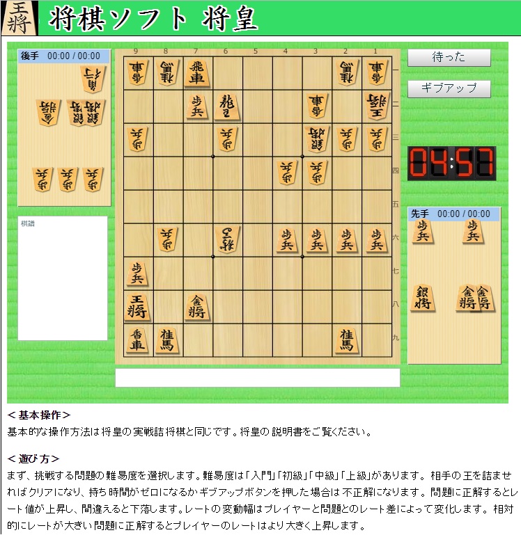 将棋 実戦詰将棋レーティングモード|将棋ソフト将皇(閉鎖)