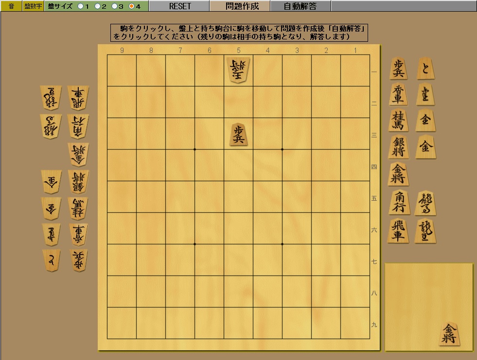 ブラウザ上で手軽に解けます。上から問題作成を選んで問題を作り、自動解答させるだけです。駒はクリックで自由に盤上や駒台に置けます。攻め方と玉方で、駒を分けてあります。25手詰まで対応しています。