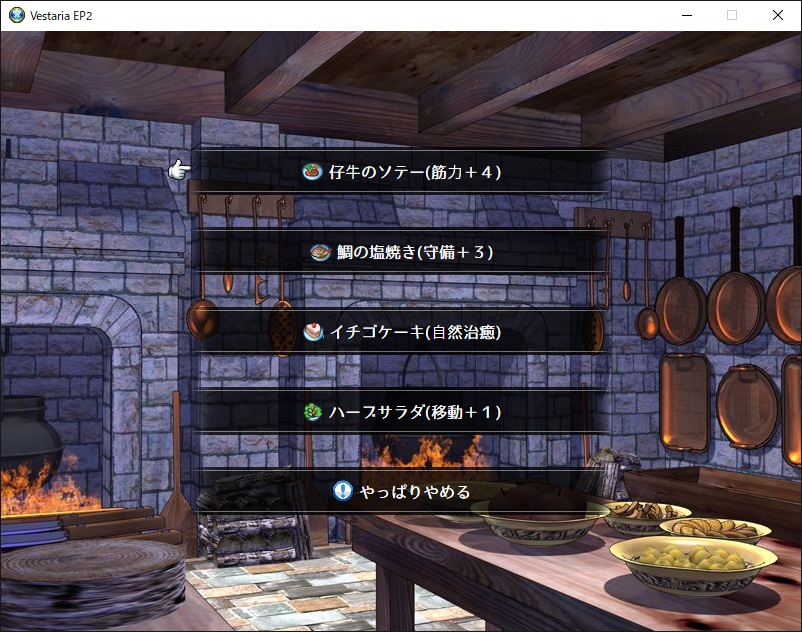 200デナリスを支払うと、4つのメニューから1つ料理を注文できる。食べたキャラはその章の終了まで、メニューに応じたステータスup効果がずっと続く。値段の割に有効なので、見かけたら利用しておくのも良い。お金がある限り、何人でも無制限に利用でき、一人で複数の効果をつけることも可能。