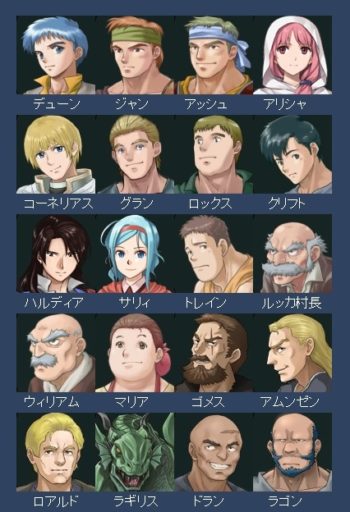 ゼクスまでがNPC、アリストテレス以降が敵です。概ね、登場する順番です。7段目のキャラの名前は、字数とスペースの関係で体裁が崩れてしまっていますが、ご了承ください。