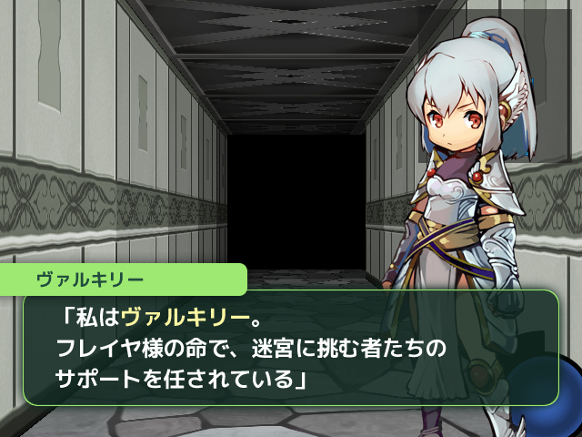 「私はヴァルキリー。フレイヤ様の命で、迷宮に挑む者たちのサポートを任されている。新しい冒険者…。君たちの実力を見極めるため、ここで待っていた。最近は観光気分で迷宮探索にやってくる者もいるからな。そういった輩はここで追い返しているが…。君たちは大丈夫そうだな。良い戦士の目をしている」