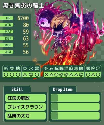 バーニングロック頭スキル敵味方全体に遠隔の炎魔法攻撃